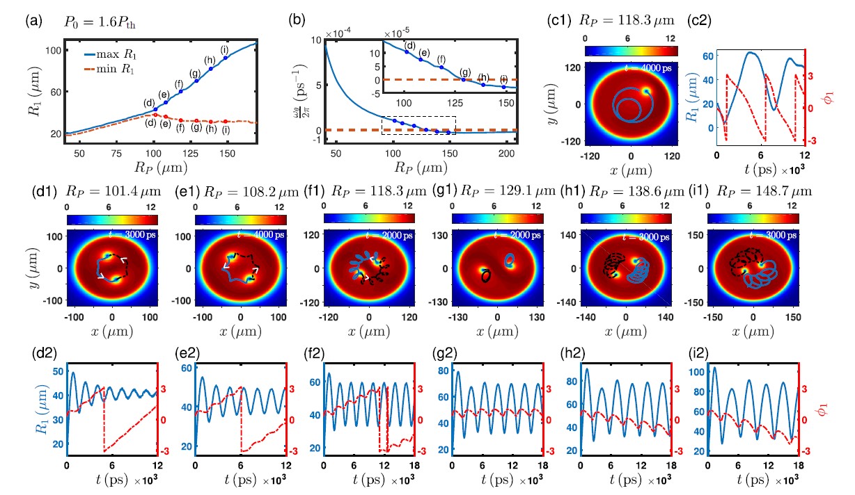 Исследование выявило, что «хореография» этого квантового танца напрямую зависит от параметров лазерной накачки. При небольшом размере «танцпола» вихри движутся по идеальным круговым орбитам, словно в вальсе. По мере увеличения радиуса накачки их танец усложняется: траектории приобретают периодически меняющийся радиус, и вихри то приближаются, то удаляются друг от друга, сохраняя при этом общую вращательную динамику. При достижении определенного критического размера накачки возникает совершенно новый, поразительный режим движения, который авторы назвали спиральной траекторией. В этом режиме вихри совершают сложное движение, включающее закручивание вокруг локальных центров на фоне общего орбитального вращения.