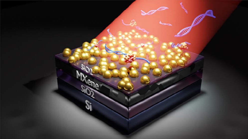 Чтобы преодолеть эти недостатки, ученые из Южной Кореи и Центра фотоники и двумерных материалов МФТИ создали многослойную подложку, используя исключительно методы нанесения из растворов. Помимо золотых наночастиц, исследователи применили двумерный материал карбид-титановый максен. Название «максены» такие материалы получили из-за своего строения Mn+1XnTx — в них чередуются атомы металла (М) и X-элементов (углерода, азота и, в редких случаях, кислорода), а так называемый терминирующий слой T может состоять из атомов кислорода, фтора, хлора, водорода и др.