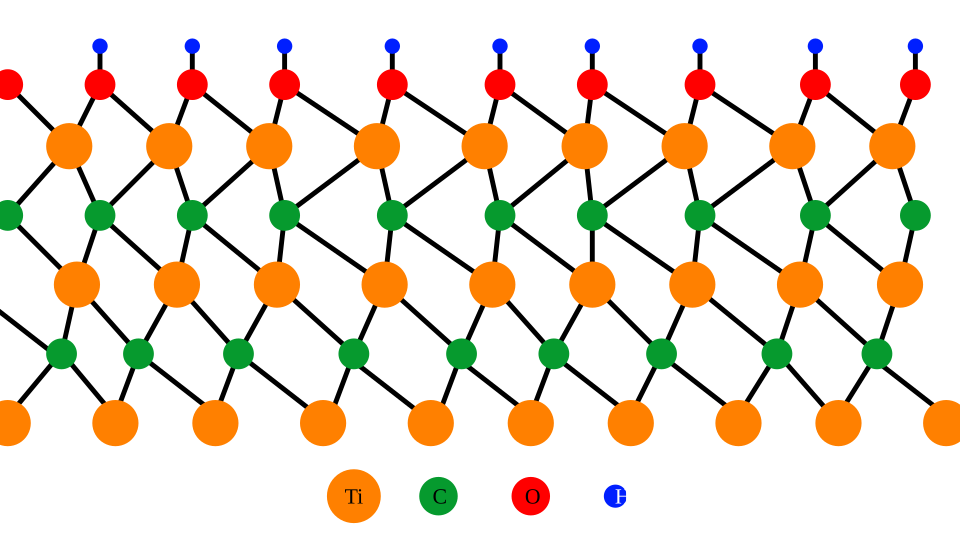 Рисунок 1. Строение карбид-титанового максена (Ti3C2Tx). Wikipedia, Mxenes