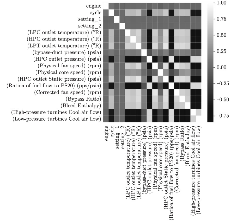 Рисунок 2. Корреляционная матрица измеряемых параметров, которые являются признаками обучаемой модели. Источник: Russian Journal of Nonlinear Dynamics.