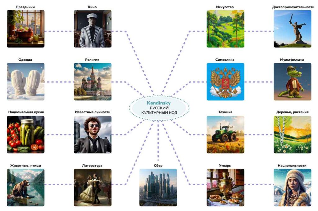 Ученые выбрали 17 направлений, наиболее значимых, по их мнению, для обучения моделей созданию изображений. Большое внимание уделили особенностям русского языка и литературы, в первую очередь крылатым выражениям и пословицам. Помимо этого были изучены традиции и ассоциирующиеся с ними зрительные образы типа «блины и самовар — атрибут Масленицы», «Чебурашка — герой сказочной повести Эдуарда Успенского».