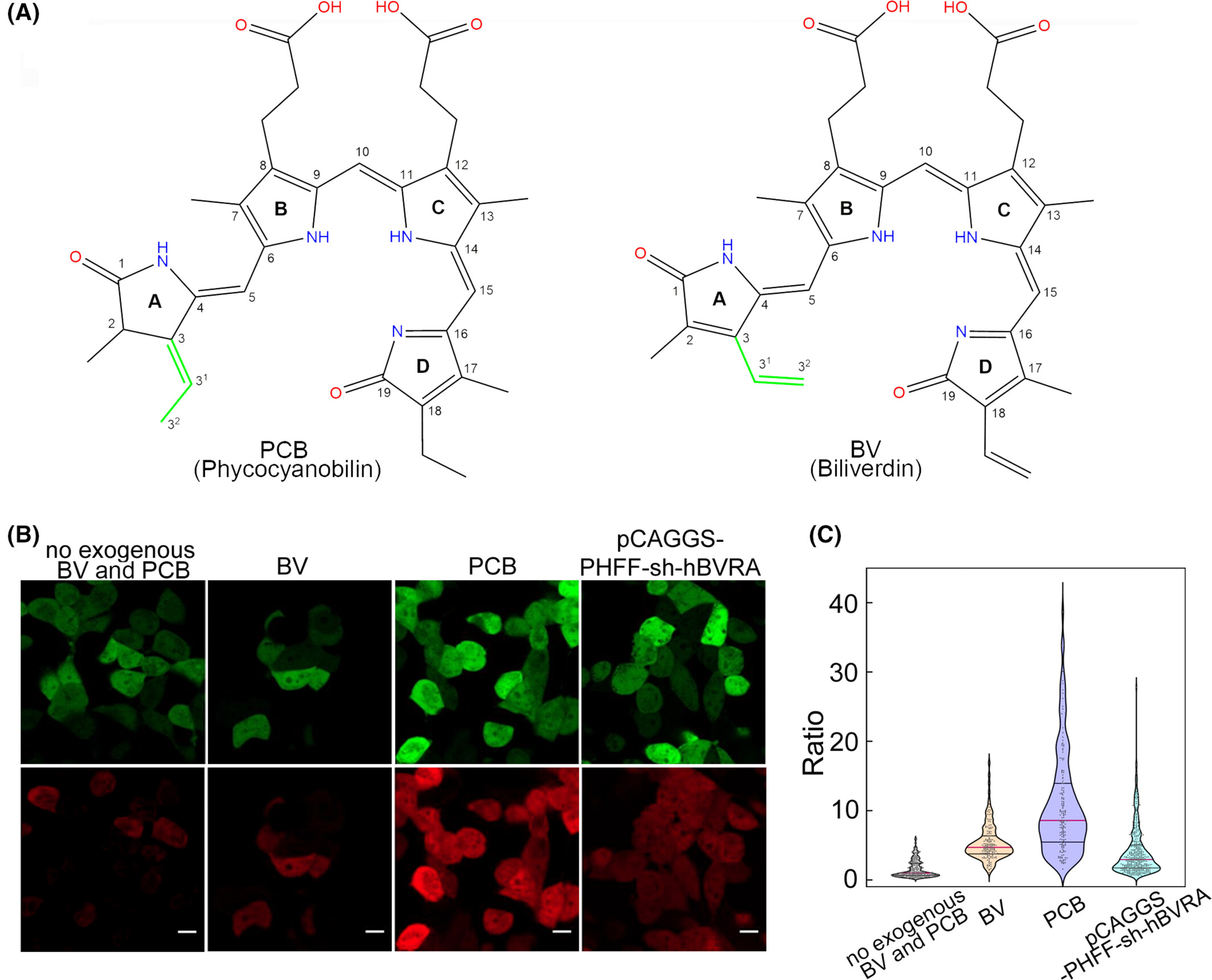 Поэтому авторы нового исследования использовали мутантную версию белка iRFP713 — iRFP713/C15S/V254C, которая благодаря мутациям C15S (замена цистеина в положении 15 на серин) и V254C (цистеин вместо валина в положении 254) более предпочтительно связывает фикоцианобилин.