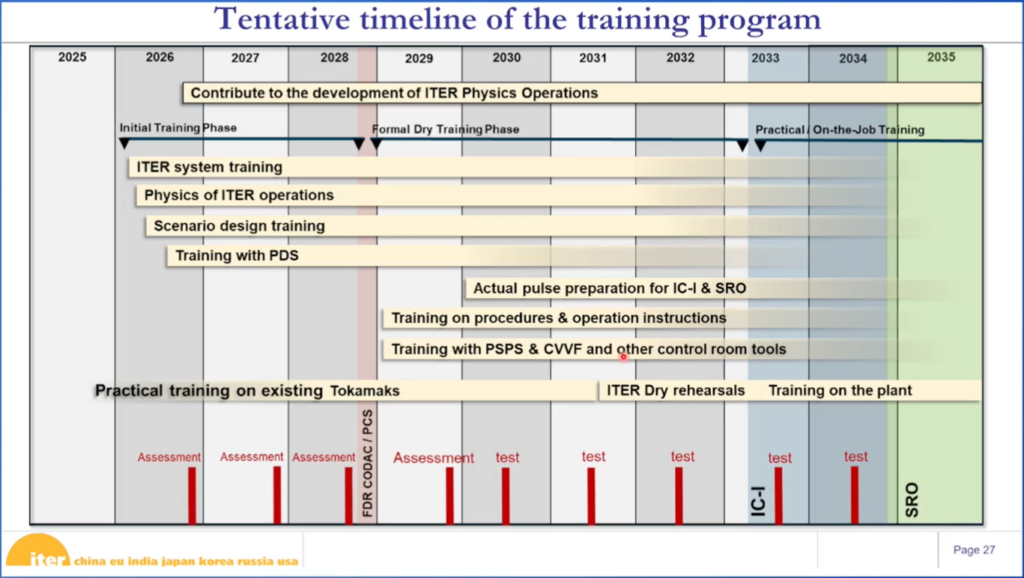 По этой причине международная организация ИТЭР создает программу подготовки специалистов — Operation Training Program. В программе подготовки кадров будет учтен весь накопленный в мире опыт работ с установками термоядерного синтеза. И поскольку пуск ITER планируется чуть меньше чем через 10 лет, уже сейчас пора готовить специалистов, которые будут управлять установкой такого масштаба.