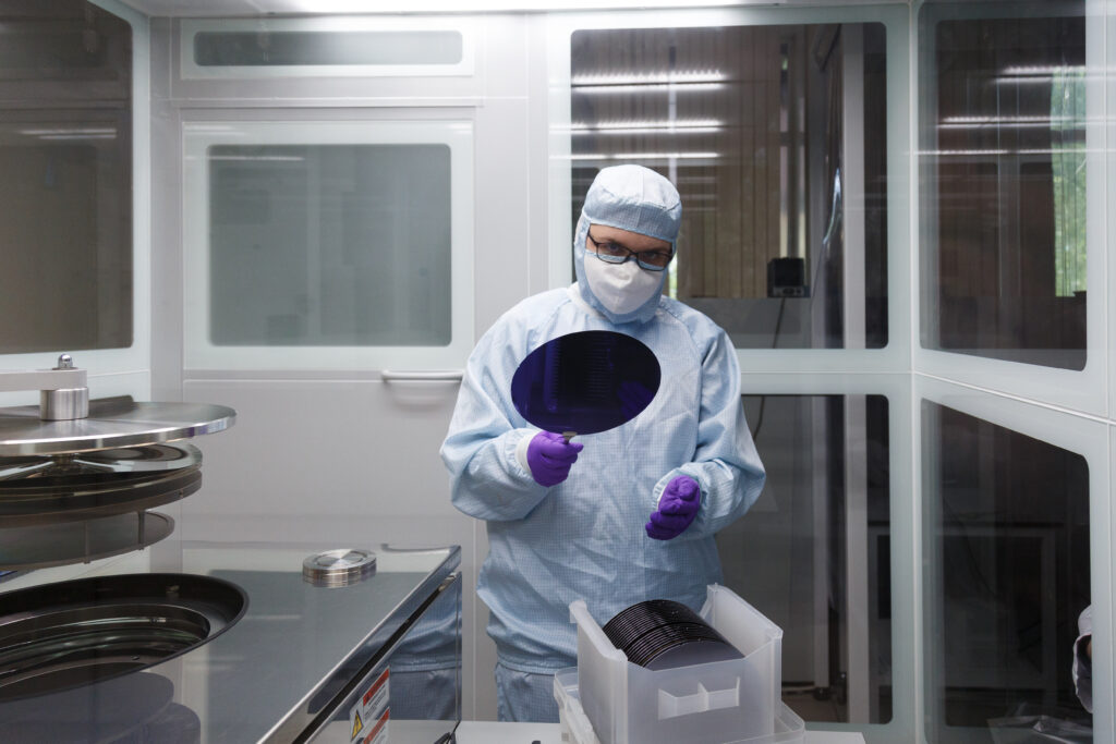 Подготовка к росту тонкопленочного слоя сегнетоэлектрического HfO2 на пластину кремния диаметром 200 мм методом атомно-слоевого осаждения в лаборатории Андрея Маркеева Центра коллективного пользования уникальным научным оборудованием в области нанотехнологий МФТИ.