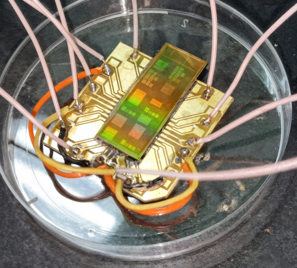 Исследовательская микросхема во время статистических исследований матриц устройств памяти на основе HfO2