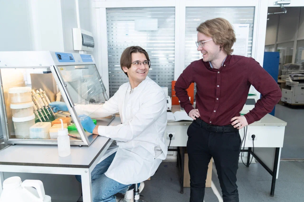Первый автор статьи младший научный сотрудник лаборатории структуры и динамики биомолекул МФТИ Иван Капранов и соавтор работы младший научный сотрудник лаборатории структуры и динамики биомолекул Игорь Левашов. © Анастасия Каплина, МФТИ